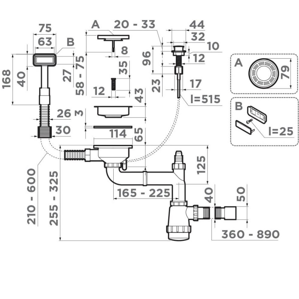 Арматура с клапаном-автоматом для одночашевых моек с прямоугольным переливом и декоративным элементом для корзины. Подходит для моек Omoikiri Ashi, Sagami, Taki, Tadzava, Omi, Kasen, Akisame, Amadare, Kata, Mizu, Haruna.