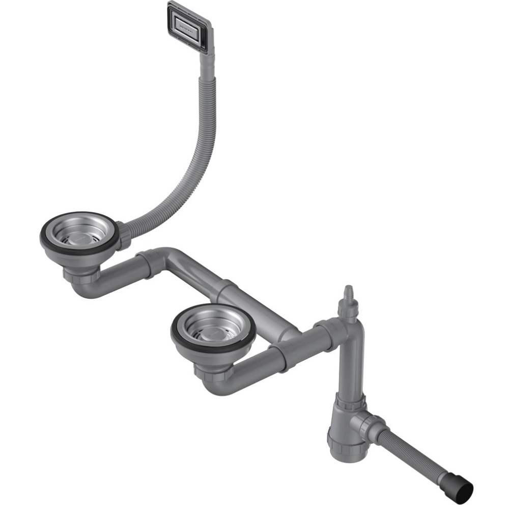 Арматура для полуторачашевых моек с универсальным прямоугольным переливом. Подходит для полуторачашевых моек Kata, Kitagawa.