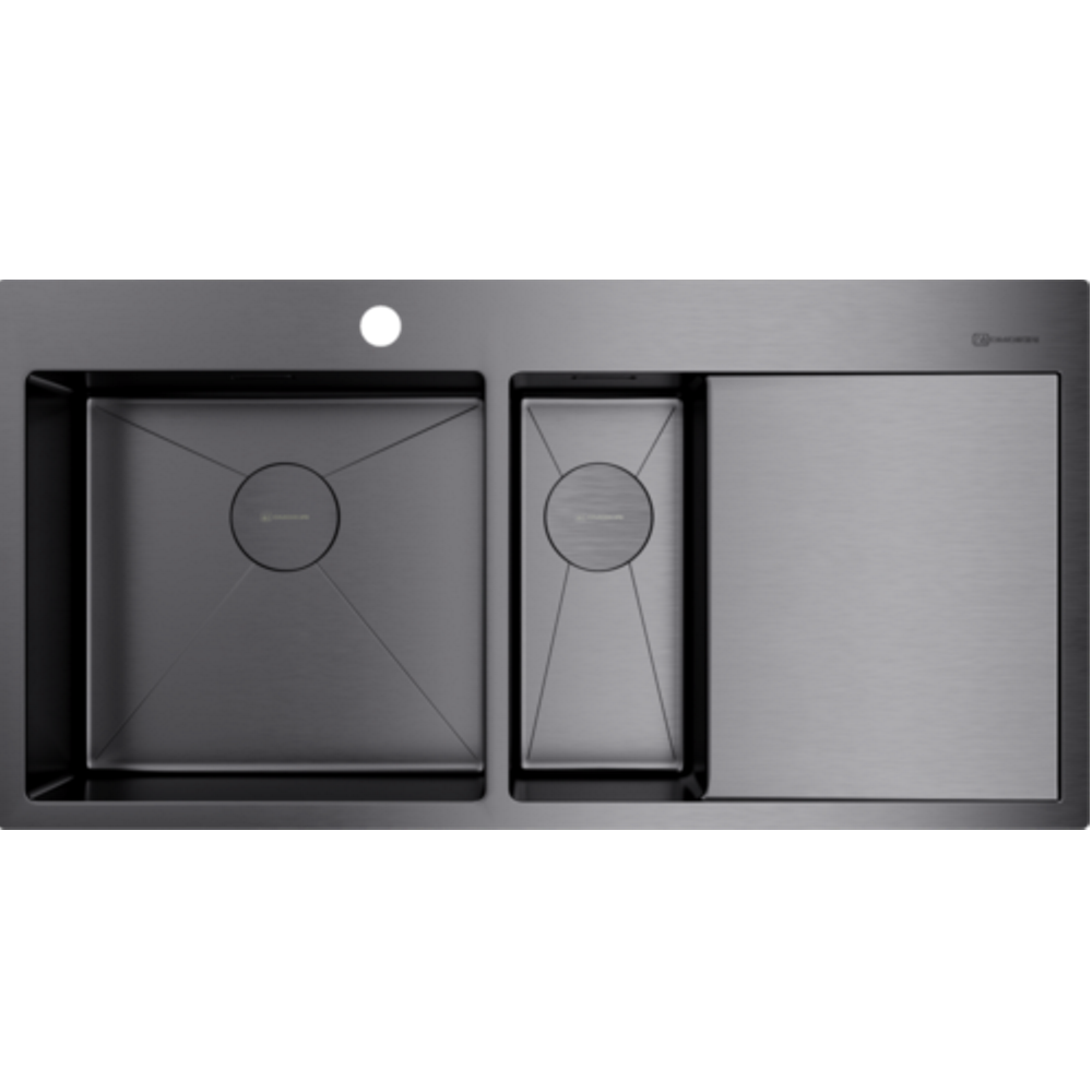 Мойка кухонная Omoikiri из коллекции Akisame 100-2-LG-L имеет размеры 1000х510 мм., изготовлена из нержавеющей стали. Форма — прямоугольная, одна чаша с отверстием для смесителя. Сифон в комплекте. Ширина чаши 42. Врезной монтаж. Имеется дополнительная чаша и крыло.