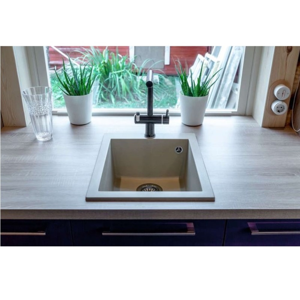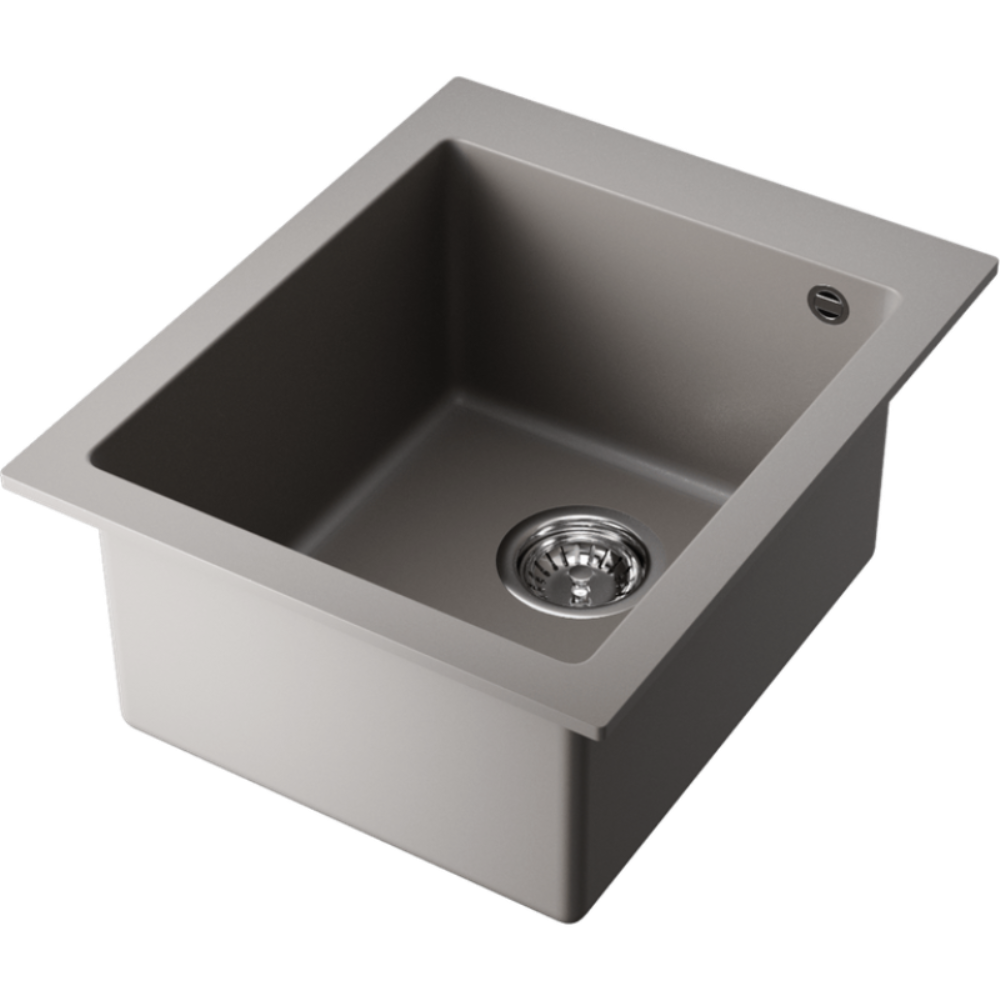 Мойка кухонная Omoikiri из коллекции Bosen 41-GR имеет размеры 410х500 мм., изготовлена из искусственного гранита. Форма — прямоугольная, одна чаша без отверстия для смесителя. Сифон в комплекте. Ширина чаши 34. Подстольный монтаж.