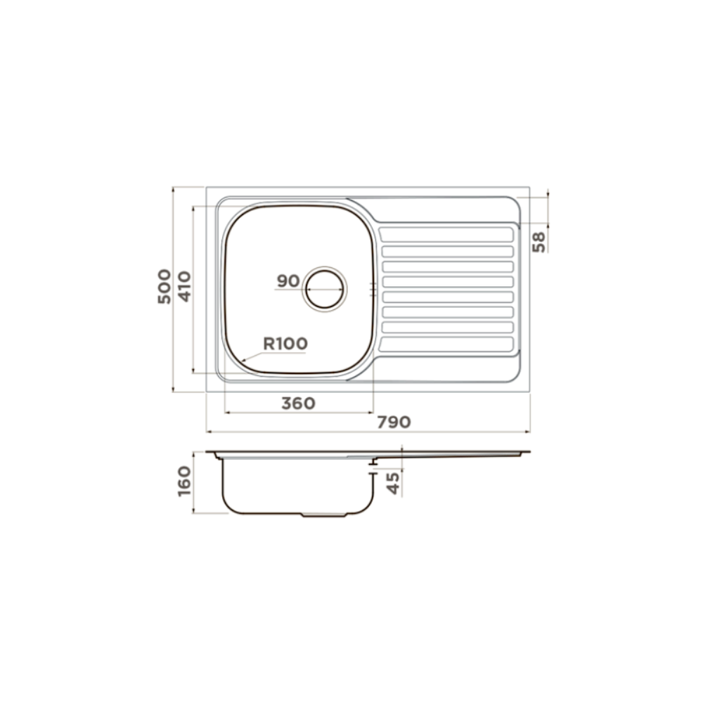 Мойка кухонная Omoikiri из коллекции Kashiogawa 79-IN имеет размеры 790х500 мм., изготовлена из нержавеющей стали. Форма — прямоугольная, одна чаша без отверстия для смесителя. Сифон в комплекте. Ширина чаши 36. Врезной монтаж. Имеется крыло.