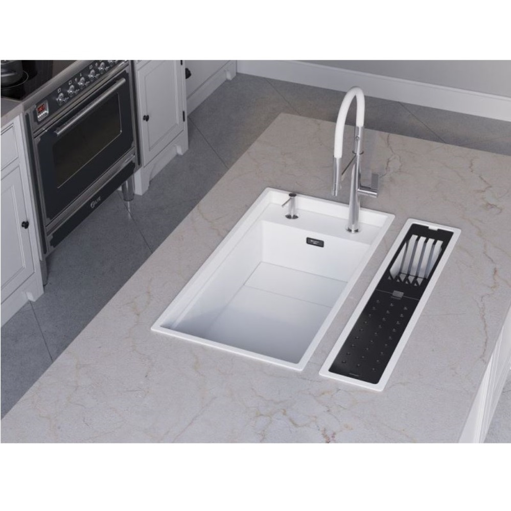 Мойка кухонная Omoikiri из коллекции Kinaru PRO 86-U/I-CN имеет размеры 860х460 мм., изготовлена из искусственной керамики. Форма — прямоугольная, одна чаша без отверстия для смесителя. Сифон в комплекте. Ширина чаши 69,4. Врезной и подстольный монтаж