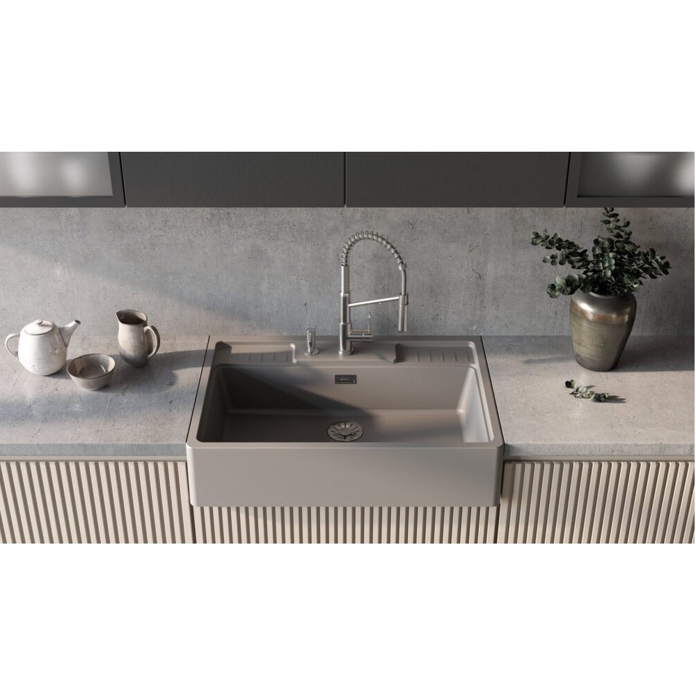 Мойка кухонная Omoikiri из коллекции Kinokawa 90-GR имеет размеры 900х635 мм., изготовлена из искусственной керамики. Форма — прямоугольная, одна чаша без отверстия для смесителя. Сифон в комплекте. Ширина чаши 84. Фронтальный монтаж.