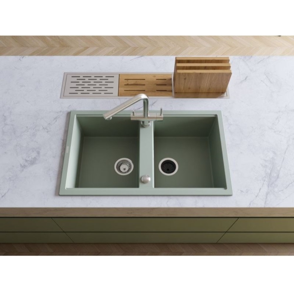 Мойка кухонная Omoikiri из коллекции Kitagawa 86-2-GB имеет размеры 860х510 мм., изготовлена из искусственной керамики. Форма — прямоугольная, две чаши без отверстия для смесителя. Сифон в комплекте. Ширина чаши 36,5. Врезной монтаж.