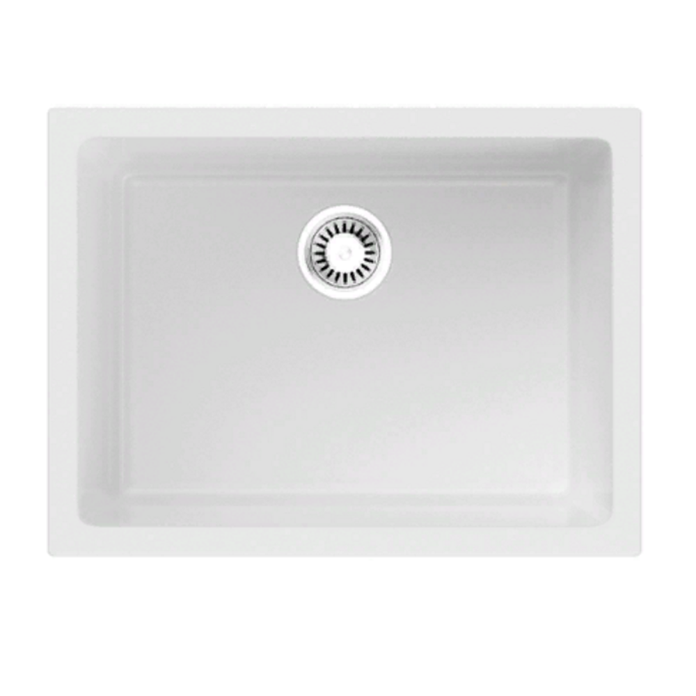 Мойка кухонная Omoikiri из коллекции Okinoshima 61-U/I-WH имеет размеры 610х460 мм., изготовлена из искусственной керамики. Форма — прямоугольная, одна чаша без отверстия для смесителя. Сифон в комплекте. Ширина чаши 55. Подстольный и врезной монтаж.