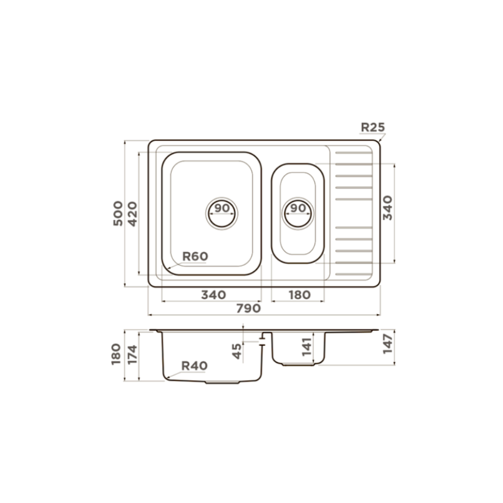 Мойка кухонная Omoikiri из коллекции Sagami 79-2-IN имеет размеры 790х500 мм., изготовлена из нержавеющей стали. Форма — прямоугольная, одна чаша без отверстия для смесителя. Сифон в комплекте. Ширина чаши 34. Врезной монтаж. Имеется дополнительная чаша и крыло.