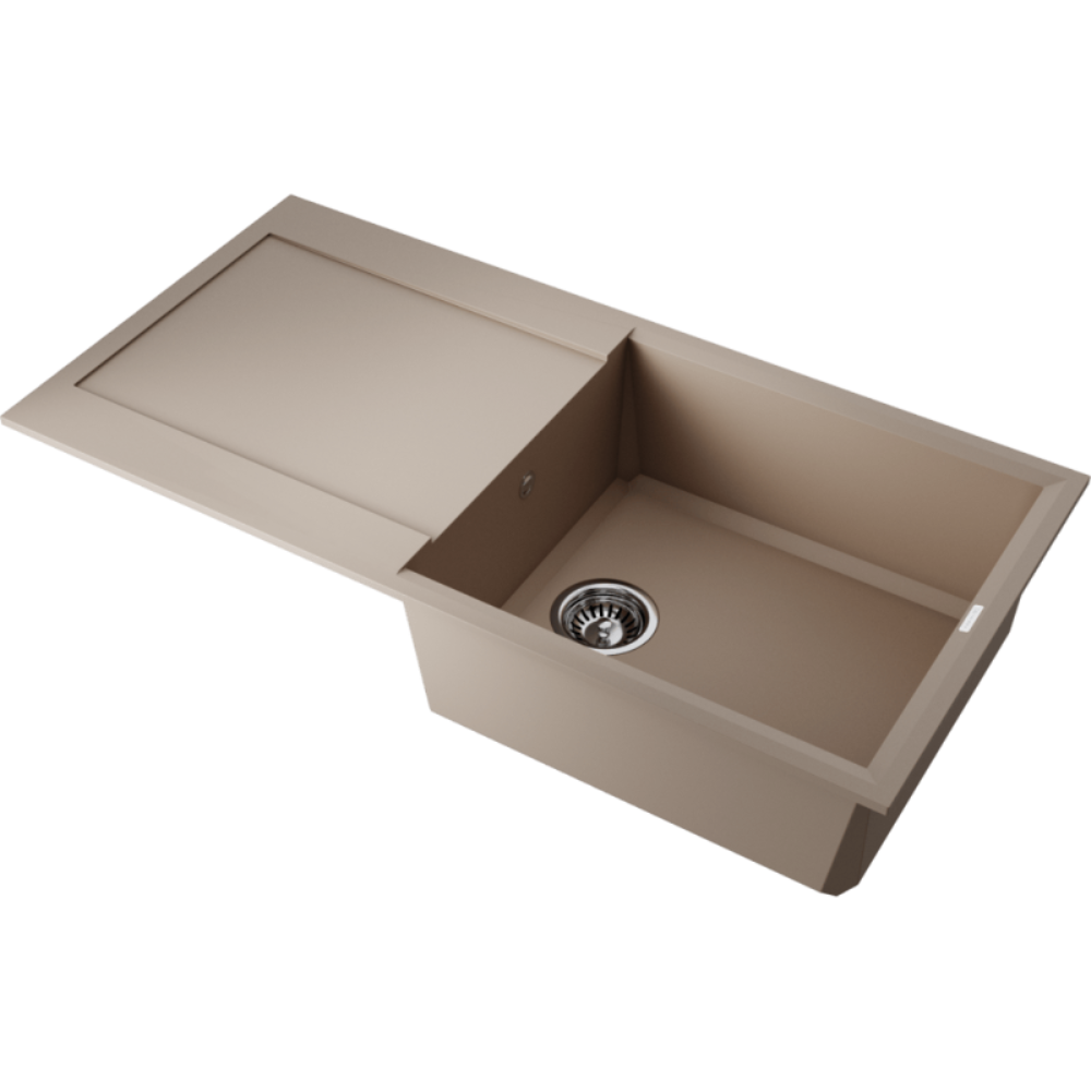 Мойка кухонная Omoikiri из коллекции Sakaime 100-SA имеет размеры 1000х500 мм., изготовлена из искусственного гранита. Форма — прямоугольная, одна чаша без отверстия для смесителя. Сифон в комплекте. Ширина чаши 47,5. Врезной монтаж. Имеется крыло.