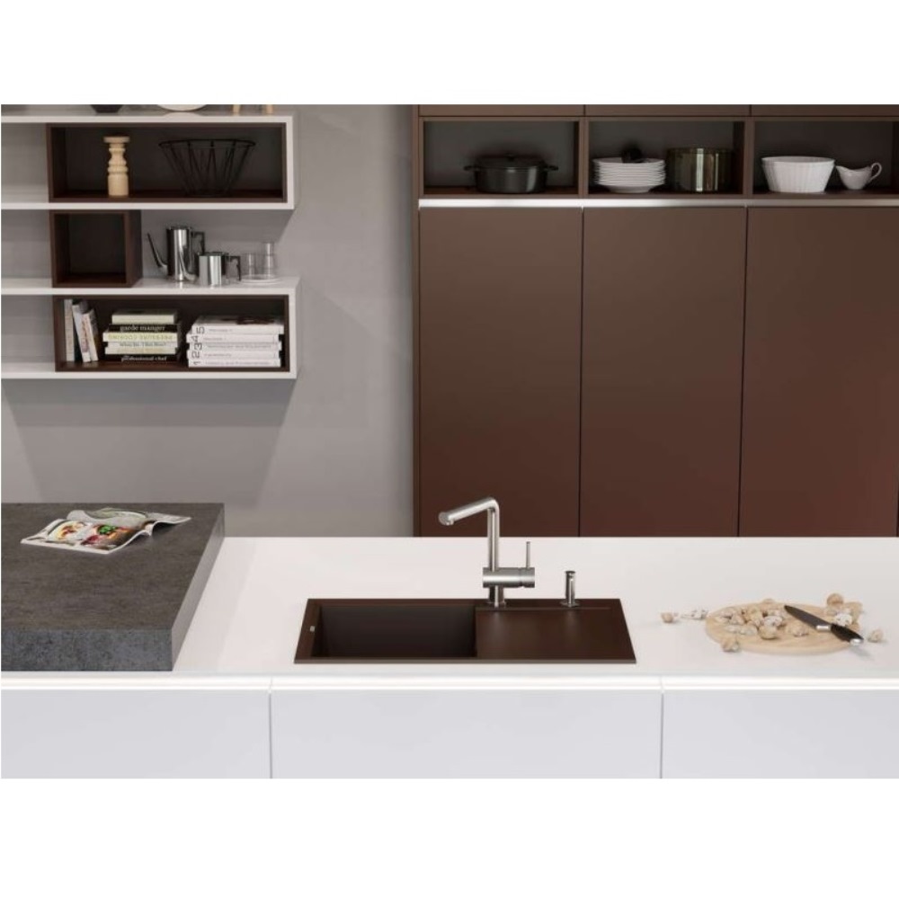 Мойка кухонная Omoikiri из коллекции Sakaime 79-BL имеет размеры 790х500 мм., изготовлена из искусственного гранита. Форма — прямоугольная, одна чаша без отверстия для смесителя. Сифон в комплекте. Ширина чаши 39. Врезной монтаж. Имеется крыло.