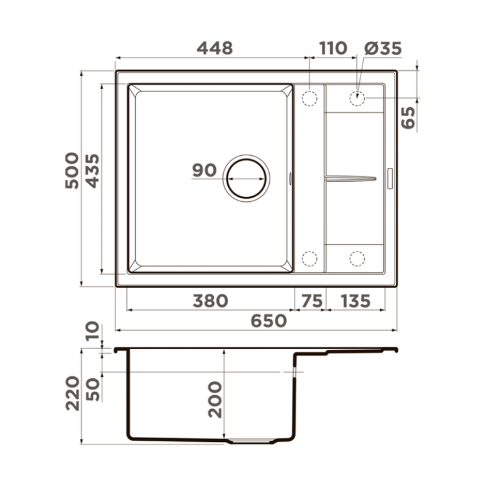 Мойка кухонная Omoikiri из коллекции Sumi 65-GR имеет размеры 650х500 мм., изготовлена из искусственного гранита. Форма — прямоугольная, одна чаша без отверстия для смесителя. Сифон в комплекте. Ширина чаши 38. Врезной монтаж. Имеется крыло.