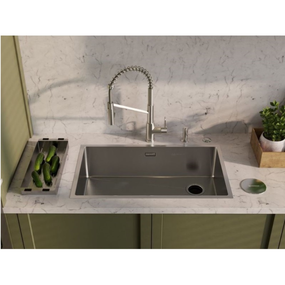 Мойка кухонная Omoikiri из коллекции Taki 74-U/IF-R-LG Side имеет размеры 740х440 мм., изготовлена из нержавеющей стали. Форма — прямоугольная, одна чаша без отверстия для смесителя. Сифон в комплекте. Ширина чаши 70. Подстольный и врезной монтаж, монтаж вровень.