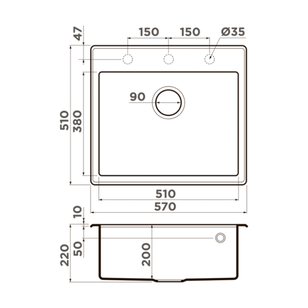 Мойка кухонная Omoikiri из коллекции Tedori 57-WH имеет размеры 570х510 мм., изготовлена из искусственного гранита. Форма — прямоугольная, одна чаша без отверстия для смесителя. Сифон в комплекте. Ширина чаши 51. Врезной монтаж.