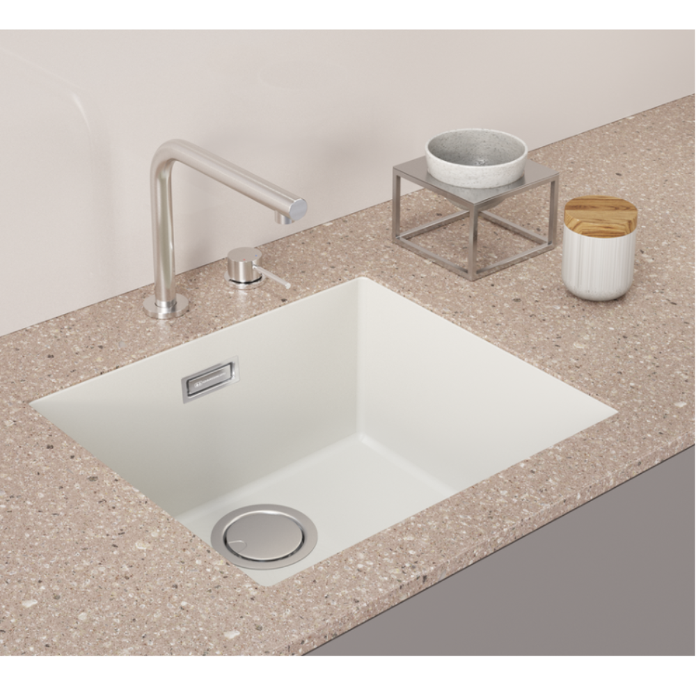 Мойка кухонная Omoikiri из коллекции Yamakawa 55-U/I-WH имеет размеры 556х456 мм., изготовлена из искусственной керамики. Форма — прямоугольная, одна чаша без отверстия для смесителя. Сифон в комплекте. Ширина чаши 50. Подстольный и врезной монтаж.
