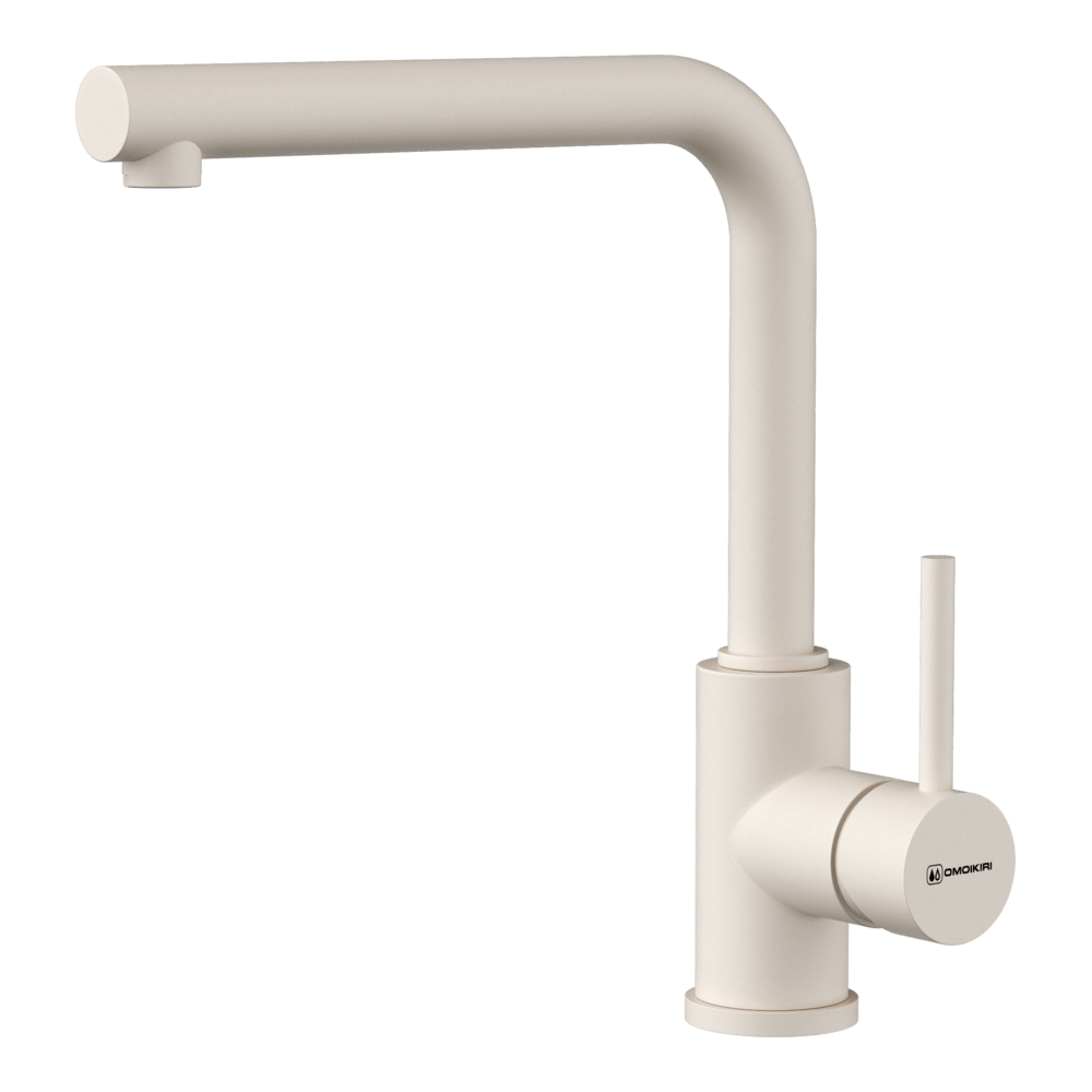 Смеситель для кухни Omoikiri Nakagawa-P оснащен рычажным управлением для регулировки температуры и напора воды. Горизонтальный монтаж на 1 отверстие. Поворотный излив 210 мм.