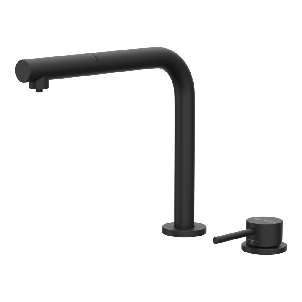 Смеситель для кухни Omoikiri Nara 2 Plus-S с подключением фильтра оснащен рычажным управлением для регулировки температуры и напора воды. Горизонтальный монтаж на 2 отверстия. Вытяжной излив 216 мм.