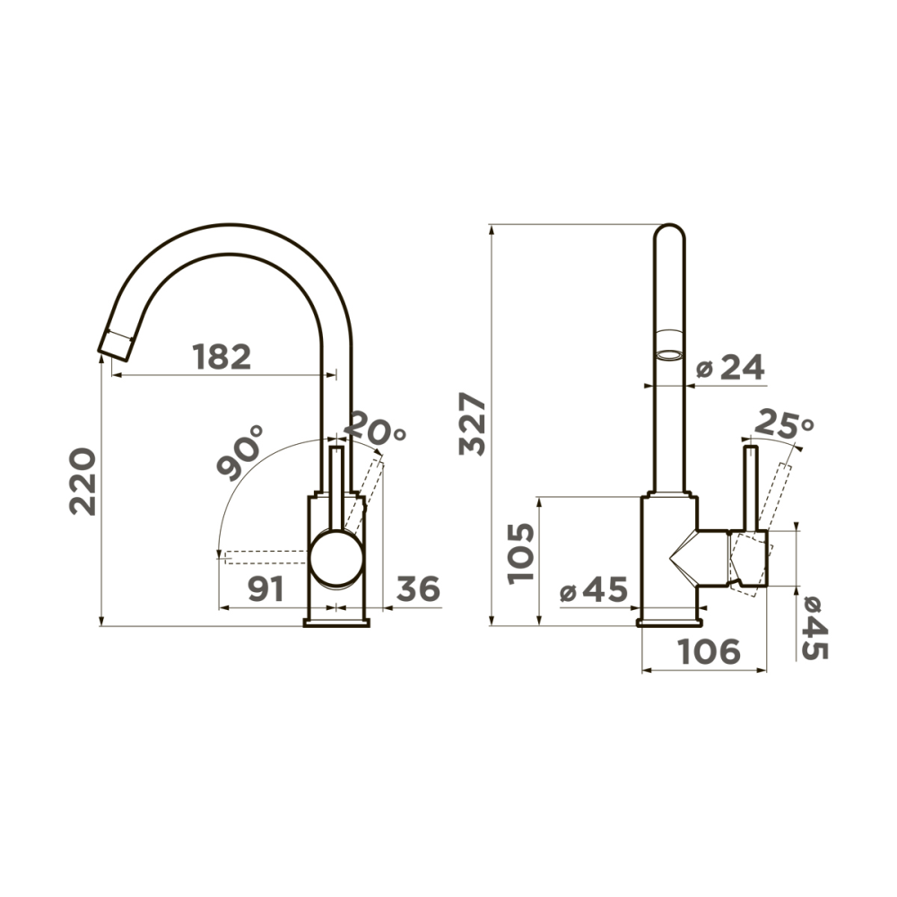 Смеситель для кухни Omoikiri Shinagawa оснащен рычажным управлением для регулировки температуры и напора воды. Горизонтальный монтаж на 1 отверстие. Поворотный излив 182 мм.