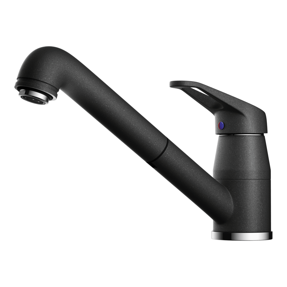 Смеситель для кухни Omoikiri Tateyama-S оснащен рычажным управлением для регулировки температуры и напора воды. Горизонтальный монтаж на 1 отверстие. Вытяжной излив 258 мм.