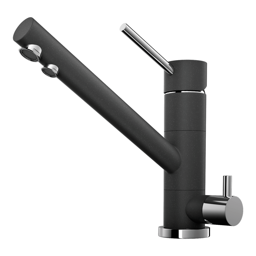 Смеситель для кухни Omoikiri Tonami с подключением фильтра оснащен рычажным управлением для регулировки температуры и напора воды. Горизонтальный монтаж на 1 отверстие. Поворотный излив 184 мм.